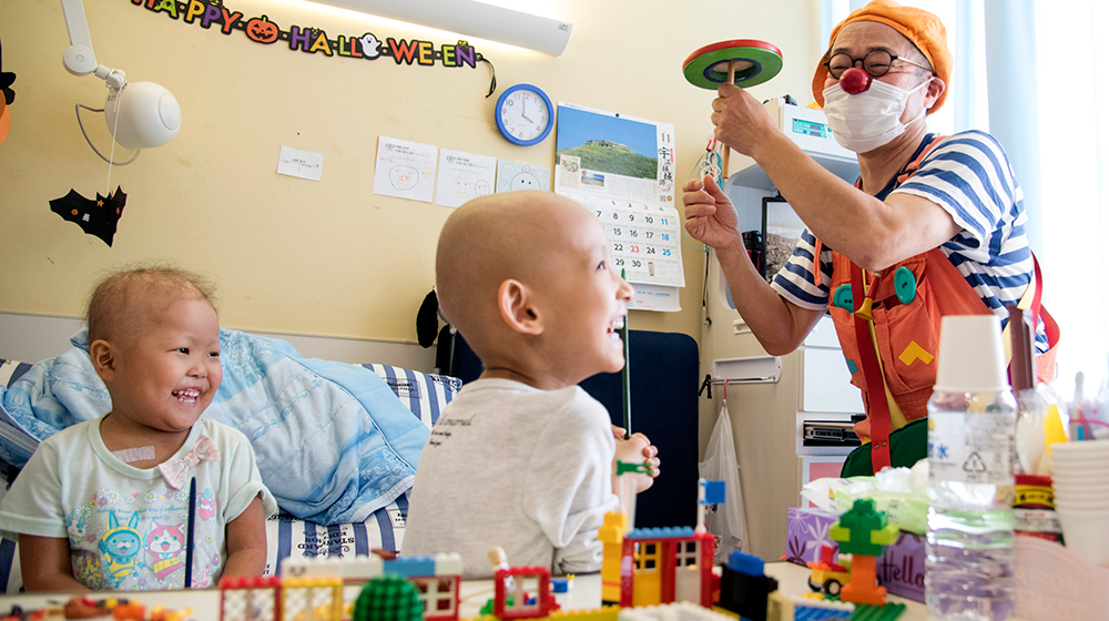 認定NPO法人日本クリニクラウン協会は、「すべてのこどもにこども時間を」を合言葉に、赤い鼻がトレードマークのクリニクラウン (臨床道化師)を小児病棟に派遣し、入院しているこどもたちが、こども本来の生きる力を取り戻し、笑顔になれる環境をつくるために2005年から活動しています。