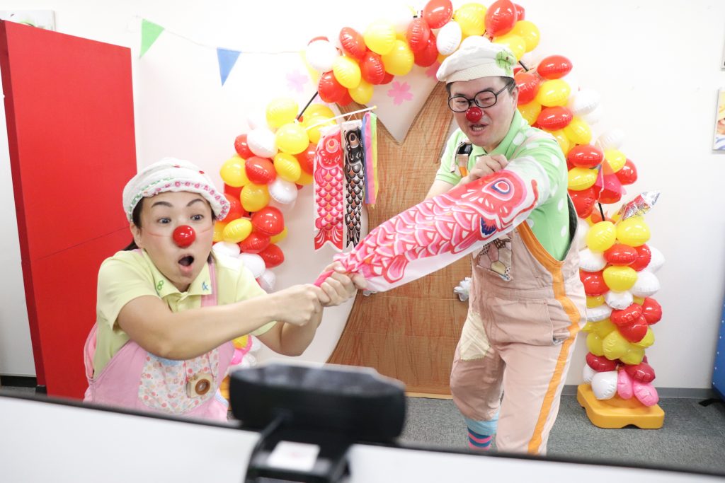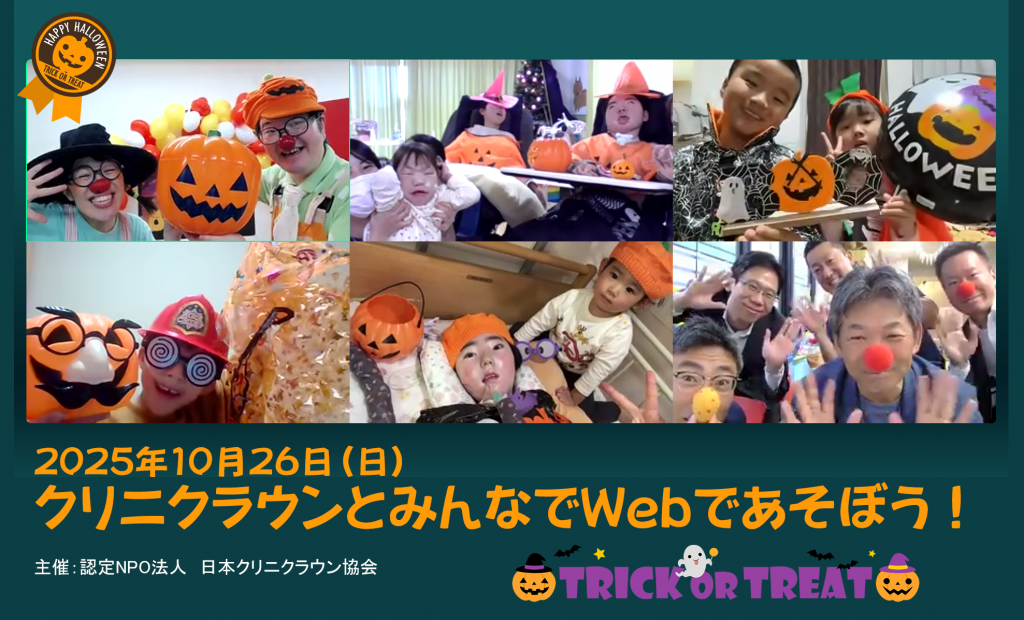 自宅や病院で療養しているこどもたちがクリニクラウンとふれあいたくさんのこどもたちと交流します。