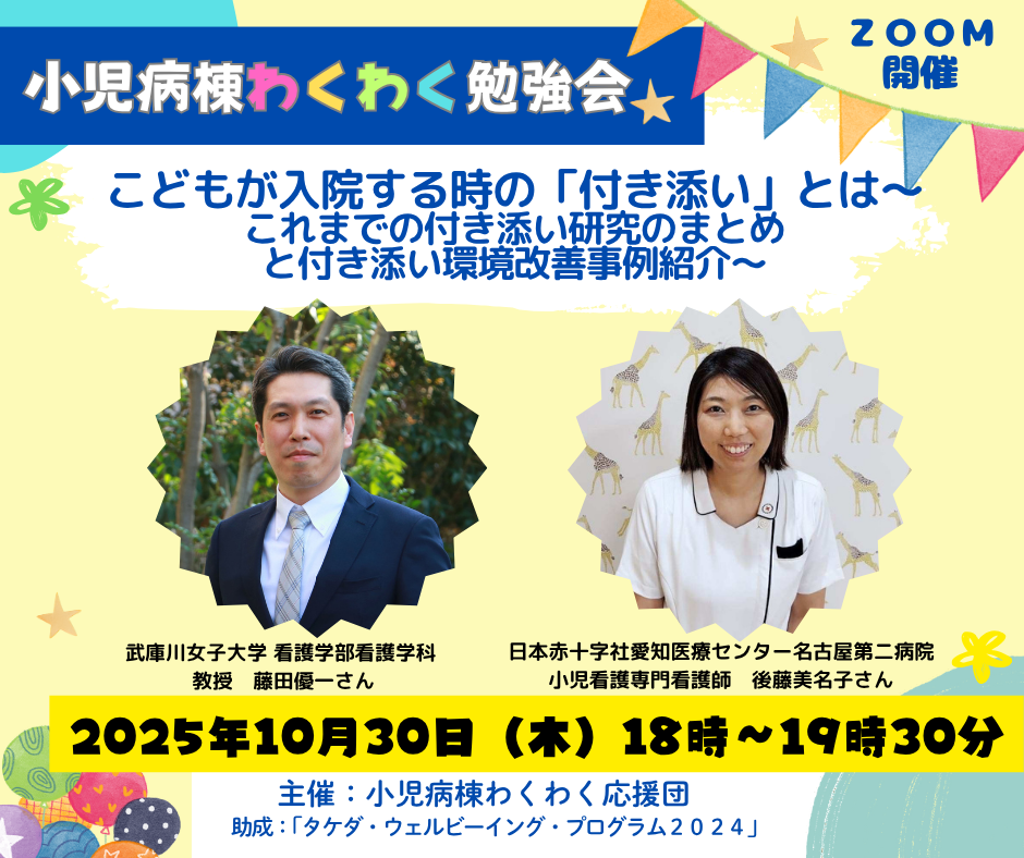 入院中の子どもと家族を支えたい方、付き添いの現状を知りたい方、病院での取り組みに関心のある方、ぜひ一緒に考え合いましょう。