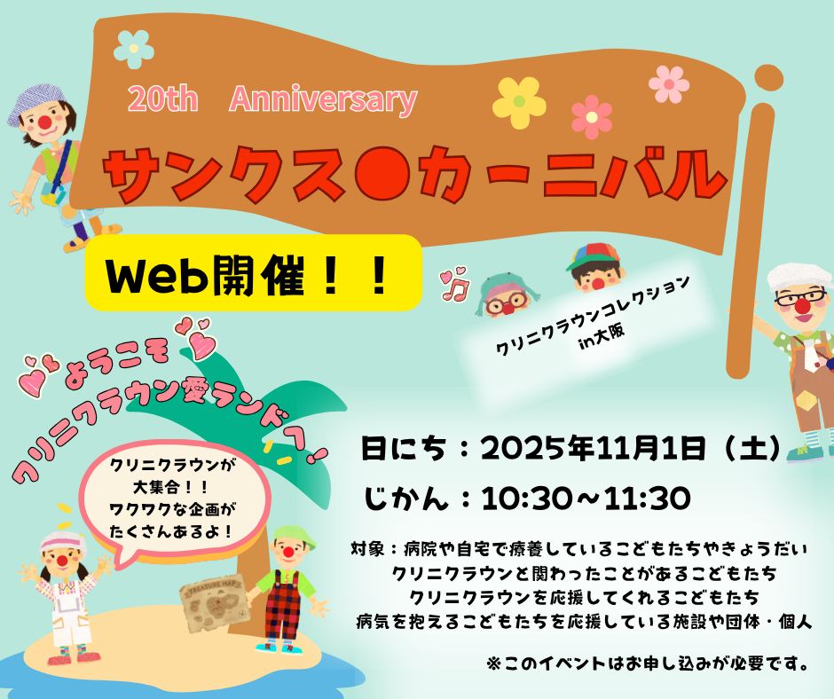 クリニクラウンと一緒に20周年をお祝いしよう!🎉✨日時:2025年11月1日(土)10時30分~11時30分