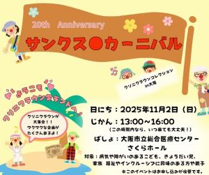 今年の10月19日で、日本クリニクラウン協会は設立20周年を迎えます🎂そこで、みんなと20周年をお祝いをしたい!!今まで、クリニクラウンとあそんでくれたこどもたちに会いたい!!そして、“ありがとう”を伝え … 続きを読む 20th anniversary サンクス🔴カーニバル
