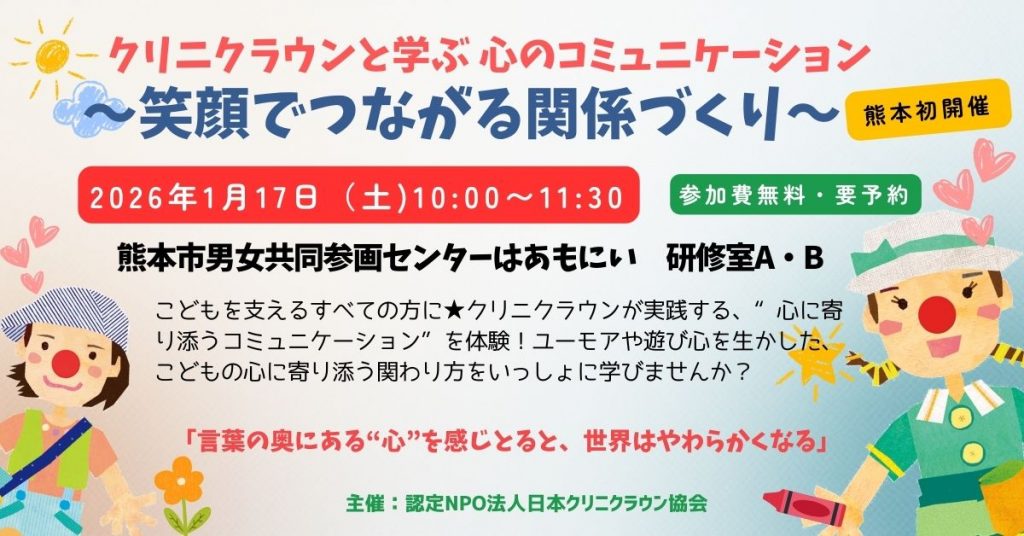クリニクラウンと学ぶ 心のコミュニケーション 笑顔でつながる関係づくり【熊本初開催】