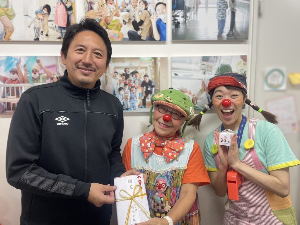 橋本英郎さんは2010年より日本クリニクラウン協会の活動に賛同くださり、背番号にちなんだ「27の絆」プロジェクトとして、長年にわたりチャリティ活動を続けてくださっています。